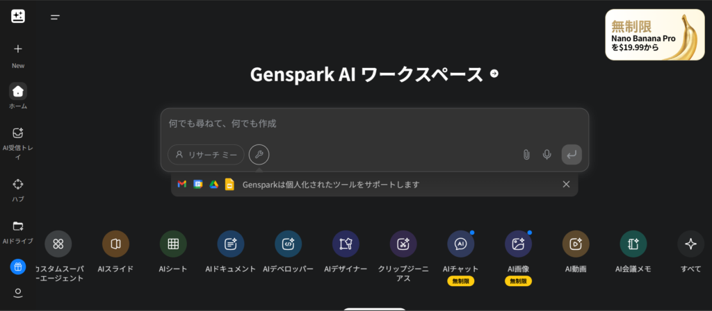 まず、Gensparkの検索窓に以下を入力。