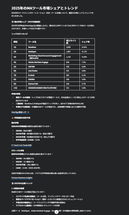 具体的には、「2025年のMAツール市場シェアとトレンド」について調べてみます。